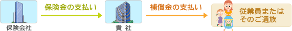 - 貴社従業員が労働災害を被った場合に、政府労災の上乗せ補償として被保険者が災害補償規定等に基づき従業員または従業員のご遺族に支払う補償金を保険金の支払対象とします。