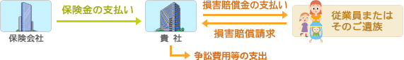 - 「使用者賠償責任保険」は、政府労災保険、災害補償規定による給付等を超過する法律上の損害賠償金を補償します。